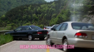 Mobil Yoon Jae dan motor Kyung Joo mengalami tabrakan, karena dua mobil di depannya yang sudah bertabrakan lebih dulu.